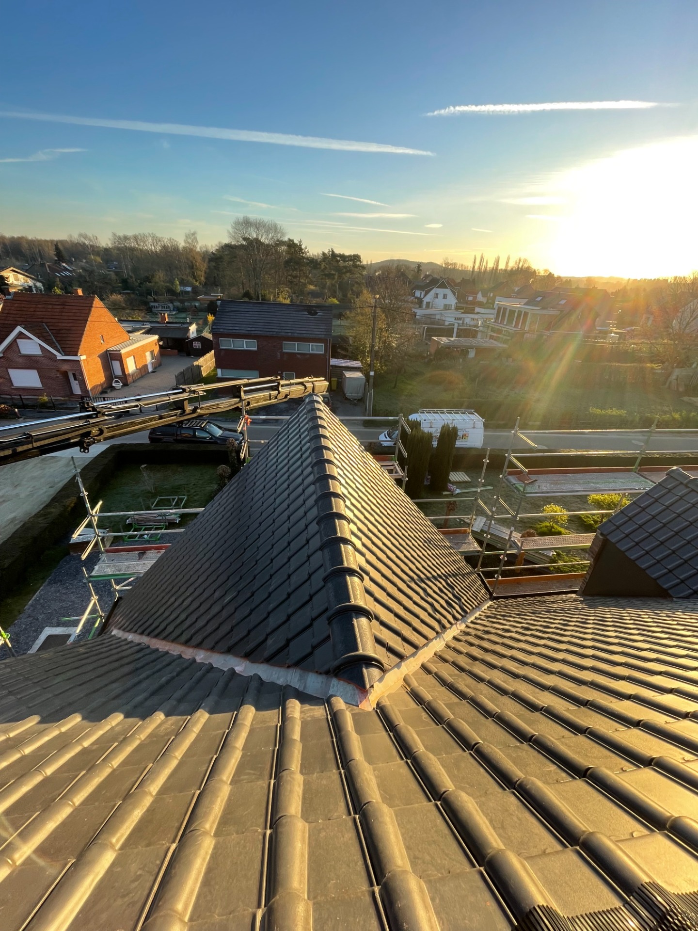 Renovatie van een bestaand hellend dak met nieuwe dakbedekking en isolatie volgens de huidige normen. Het dak werd volledig waterdicht afgewerkt met aandacht voor detail en duurzaamheid.